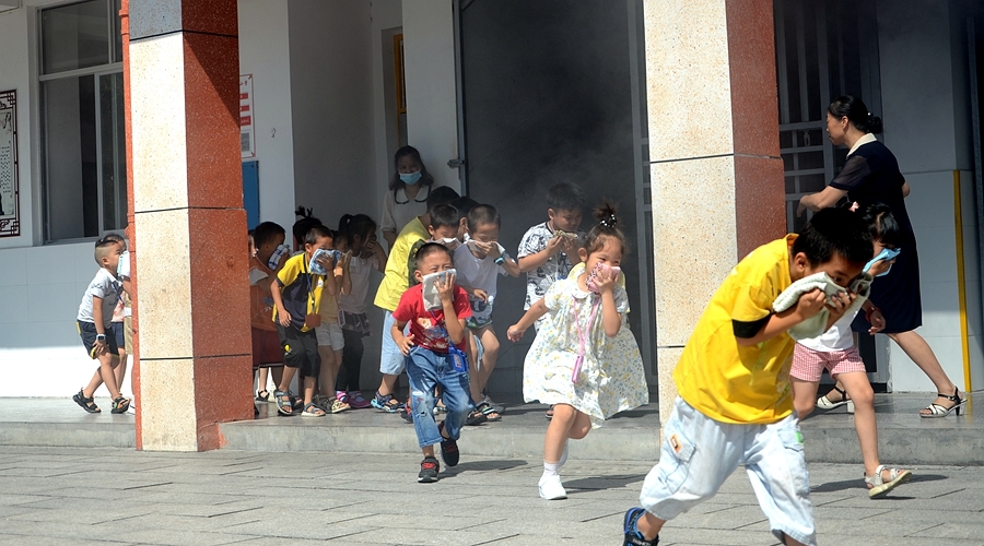 当天,随着消防报警声的响起,各班主任、各楼层指挥人员迅速到达指定地点,学生用湿毛巾捂住口鼻,弯着腰小快步,从安全疏散通道紧急撤离。全校师生在指定时间内全部安全、快速、有序地疏散到学校操场。随后,消防员迅速前往指定区域展开灭火,同时,学校医务人员也到达现场,救治“受伤”人员。