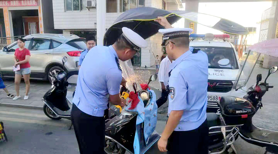 “先礼后兵,重拳出击”。通过宣传发动后,枫树乡组织安监站联合交警、派出所,利用上班下班、上学放学,赶场日在主干道、商场、市场等交通密集区域均设置固定整治点开展“一盔一带”集中整治行动,对驾乘摩托车人员不按规定佩戴安全头盔、私自安装遮阳伞雨伞的交通违法行为,当场予以查扣,并对当事人进行严厉批评教育,在当事人配备好头盔、签订好承诺的前提下予以放行。