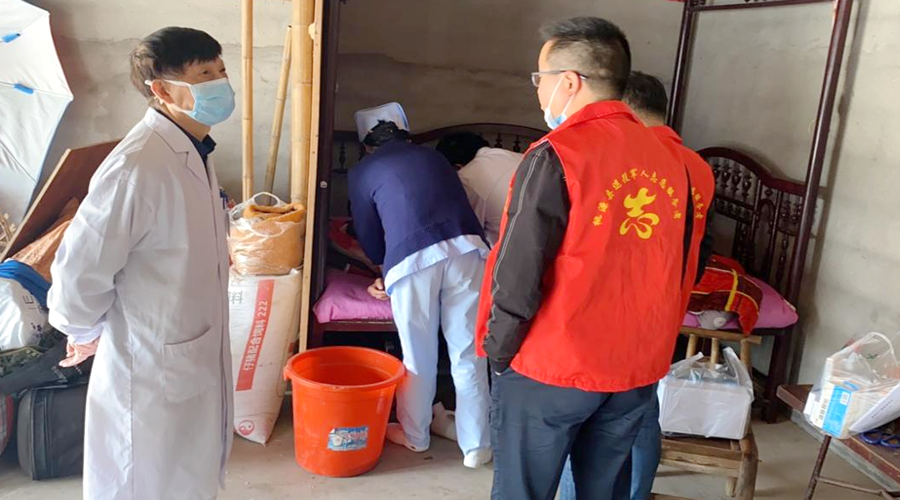 随后专家一行又前往行动不便的抗美援朝邵金东进行送医送药上门。