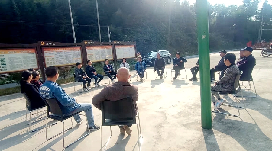 11月2日下午,趁着难得的好天气,杨溪桥镇岩吾溪村联村干部、驻村队长、党员、村民一二十人围坐在村部旁的空地上,一边晒着太阳,一边聊些家长里短,议一下村里发展。