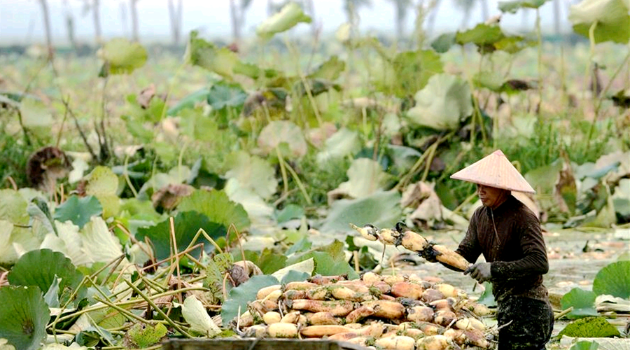 在田河坝村的莲藕种专业合作社内,一根根白嫩肥硕的莲藕堆满了采藕船,经过冲洗、分拣、装框直接运往当地的蔬菜批发市场,每亩收益有3000多元。莲藕全身是宝,发展前景广阔,该村将继续扩大种植面积,建设标准化厂房,探索鱼藕混养模式,为农户提供技术支持,努力实现共同富裕。