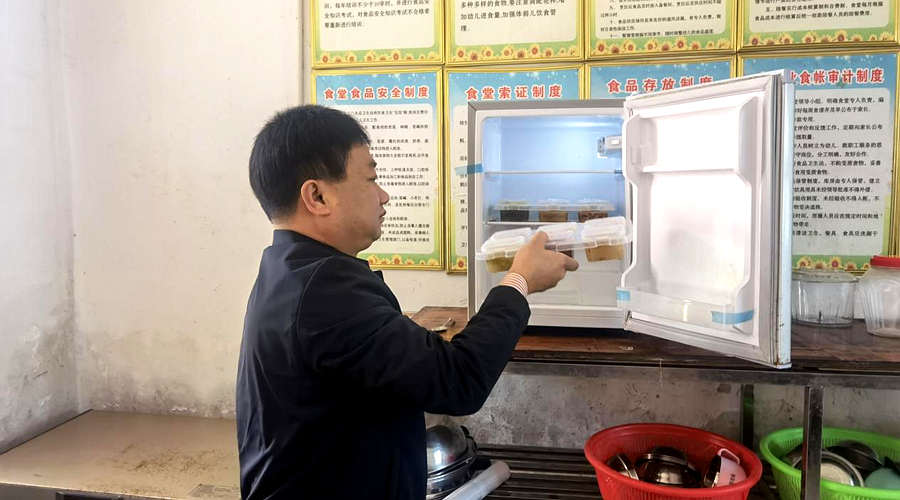 此次检查该乡党委书记陈明清通过不打招呼、不发通知的方式进行实地查看,通过听取汇报、查阅资料台账等方式,对食品安全工作落实情况进行了全面了解。并详细检查了食材储存室的卫生、通风等情况。