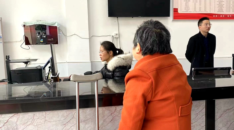 “嗲嗲,您坐到这里,我帮您填资料。”