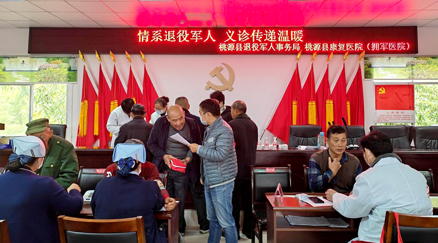 为进一步弘扬拥军优属光荣传统,不断完善退役军人健康服务体系,保障退役军人的健康生活,11月17日,桃源县退役军人事务局联合桃源县康复医院来到九溪镇开展关爱退役军人义诊活动,为退役军人送医送药、传递温暖。