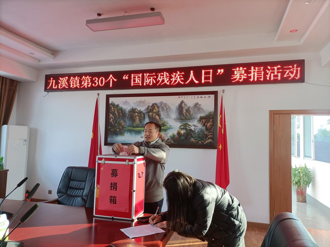 为传承中华民族扶弱助残的传统美德,营造人人关爱残疾人的良好风尚,11月24日,在第30个国际残疾人日即将到来之际,九溪镇组织开展爱心助残募捐活动。活动现场,班子成员率先垂范,干部职工积极响应,纷纷走向捐款箱,献出自己一份爱心。