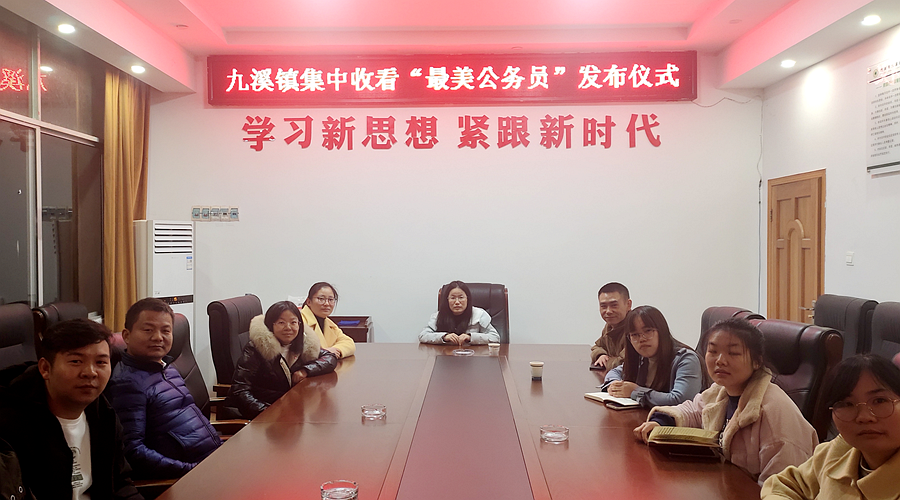 12月2日晚,九溪镇党委组织在家机关干部集中学习收看“最美公务员”发布仪式及相关报道,张春山等32名同志被评选确定为“最美公务员”。