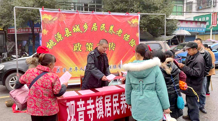 为使城乡居民养老保险政策家喻户晓,引导广大居民群众积极参保缴费,实现广大群众老有所依、老有所养,12月16日一早,在桃源县人社局,观音寺政府的统一部署和安排下,观音寺镇社会事务综合服务中心的工作人员和志愿者们利用集市开展城乡居保政策宣传活动,面对面宣讲城乡居民养老保险各项政策,解答群众疑问,引导他们参保。