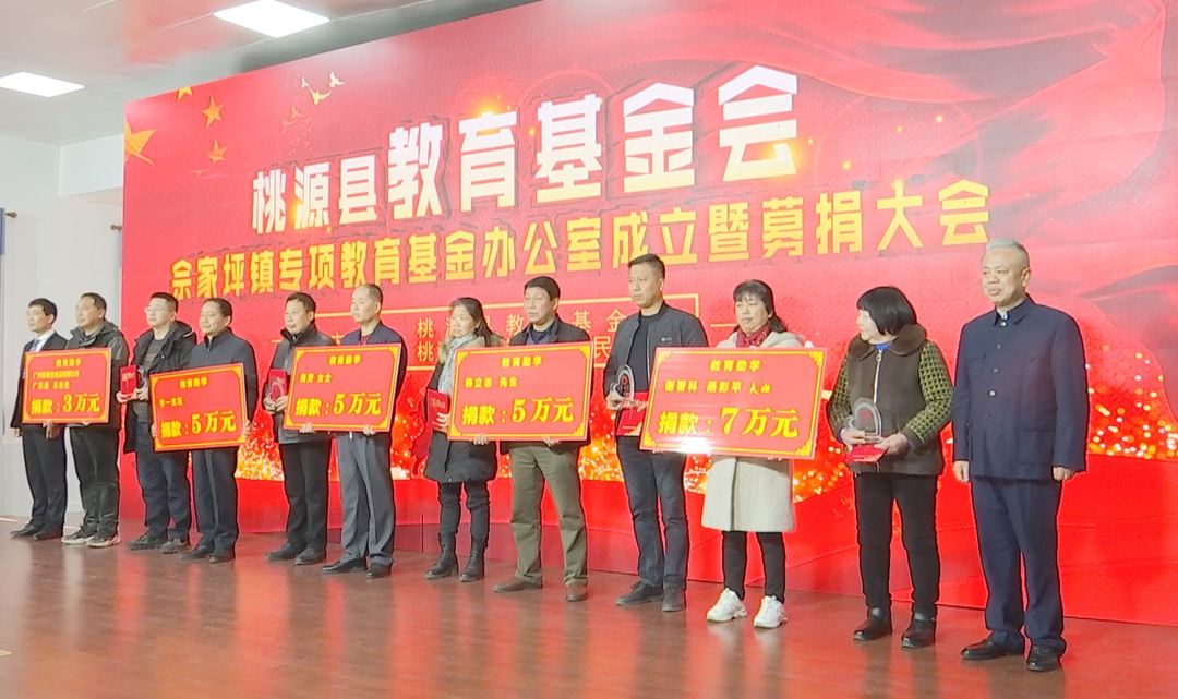 近日,桃源县教育基金会佘家坪镇专项教育基金办公室授牌成立,并进行了首次募捐活动,现场累计捐资金额达225.8万元。