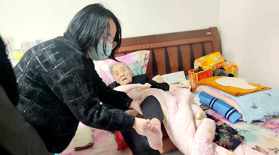 姜萍清奶奶今年116岁了,两年前因为双腿无力卧病在床。家人想要帮她去办理残疾证。由于要本人去二甲医院进行残疾鉴定,老人出门不便,因此办证的事情一拖再拖。社区干部通过走访了解这一情况后,立即反映给了街道并联系了县人民医院,根据老人的实际情况,决定上门为其进行鉴定。