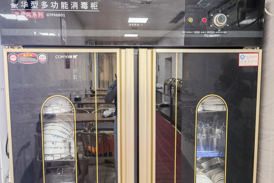 每次就餐后,餐具放入高温消毒柜内进行全面消毒