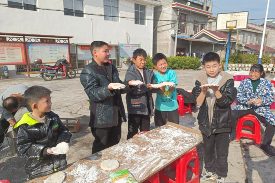 在五马寨村儿童之家,一群快乐的小朋友正在参与“打年糕”活动,体会劳动的乐趣,感受年的味道,孩子们虽然都是第一次,那种新鲜、好奇洋溢了满脸,个个干得热火朝天,对自己的“作品”似乎挺满意,从心底里透出的笑容,温暖着我们的心。