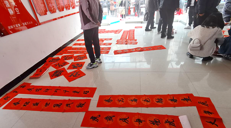 正所谓无联不成春,有联春更浓。活动特地邀请了常德市书法家协会书法名家到场挥毫泼墨写挥春。只见书法家们摊开红纸,将对辞旧迎新的美好愿景赋诸笔端,挥毫泼墨,笔墨传情,一副副承载着对新一年祝福和期盼的春联诞生。到场观众均可以自由选择春联内容,由名家现场完成后自行领取带走,人人有份,现场一派喜庆祥和。