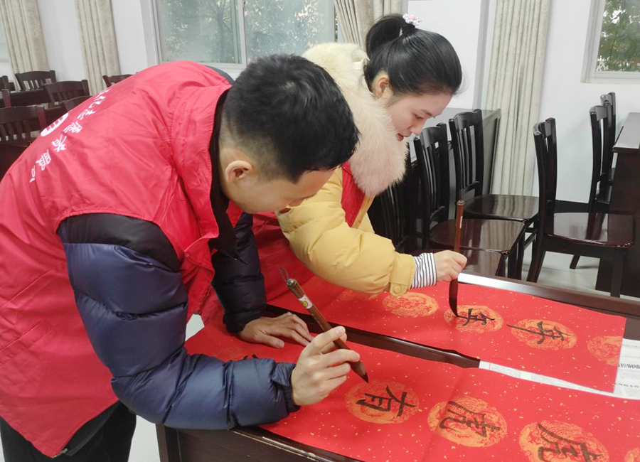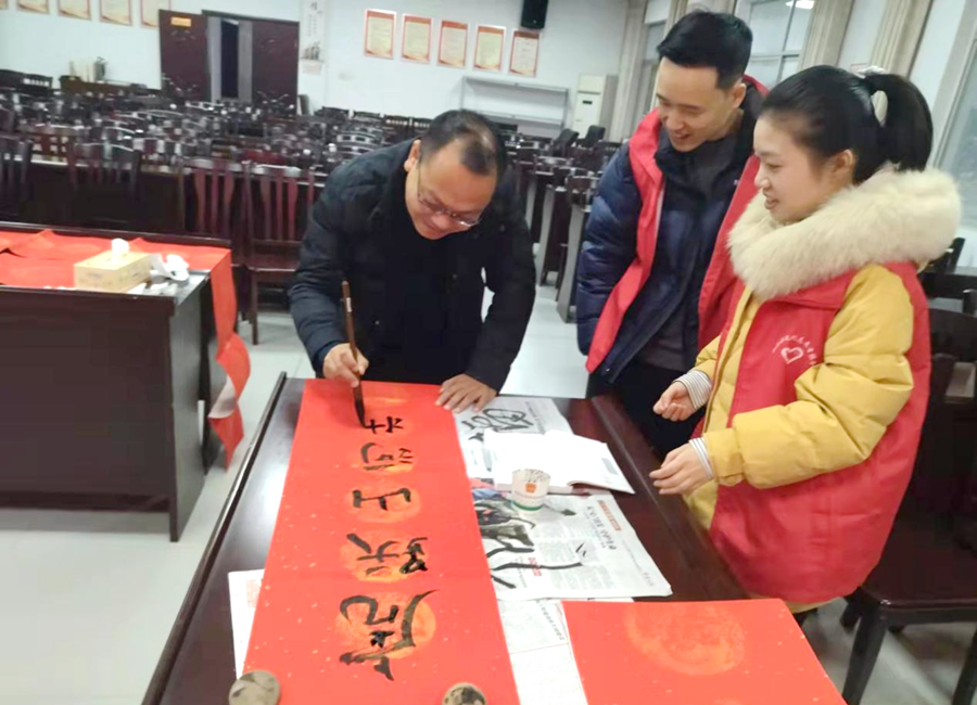 手写春联,是中华民族传承千年的宝藏,亦是记忆中红红火火的福祉。据悉,本次活动共书写新春对联26副,这些春联将由浔阳街道党政班子成员带领社会事务综合服务中心工作人员送给2021年浔阳街道农村危房改造新修建的住户以及脱贫户,为他们上户送春联、贴春联,并组织进行慰问,通过这种方式,让群众近距离感受中国优秀传统文化的魅力,激发村民奋发向上、积极作为的思想理念,为乡村文化振兴贡献一份力量。