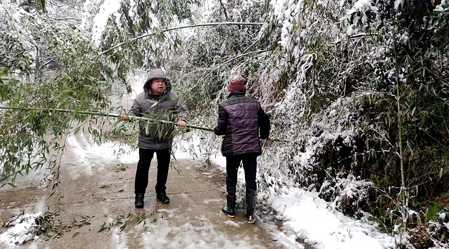 同时,各村支两委也积极响应,组织党员干部成立除雪队,对村组干道、危险路段、结冰路段进行了清扫,将大雪压倒在路上的树枝进行了清理,白雪映衬下的忙碌身影是这个冬日里最美的风景。