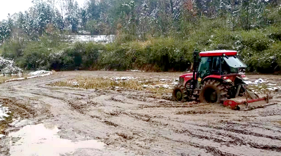 图:佘家坪镇三圣殿村旋耕机正在犁地