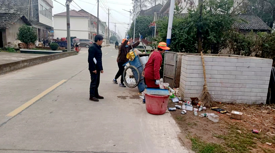 杨先群在杨家坪村督导垃圾清运工作