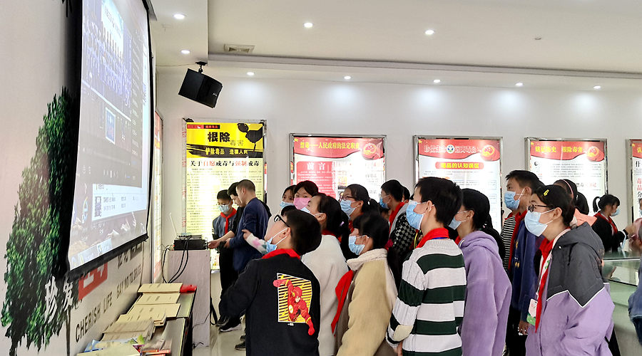 在基地工作人员的引领下,师生依次进入禁毒展馆,了解了国际国内的毒情形势,重新认识了党和政府开展禁毒工作坚定决心;通过观看图片资料、仿真毒品样品,提高了认识毒品的能力;通过收看禁毒宣传片进一步感受因吸毒而诱发各类违法犯罪和暴恐事件对人类社会造成的危害;通过观看禁毒图板展览,感知毒品的蔓延途径、感知“一日吸毒,终身戒毒”的艰难,增强了识毒、防毒、拒毒的能力。