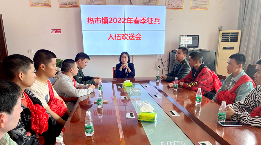 3月14日,桃源县热市镇召开2022年春季征兵入伍欢送会,未即将踏上保家卫国征程的青年送行。党委书记田艳、武装部长文敬君、6名应征入伍青年以及家属参加了会议。