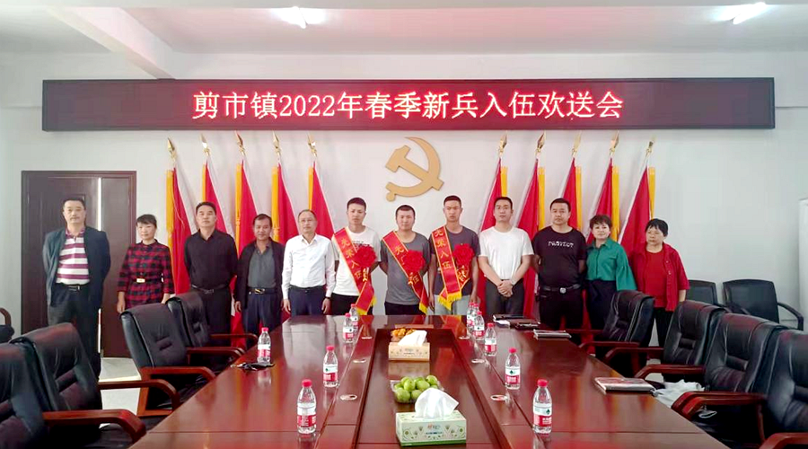 3月14日,剪市镇召开镇召开 2022年春季入伍新兵欢送会。3名新兵胸前佩戴红花,披着彩带,志气昂扬,带着满腔的激情和斗志,即将奔赴军营。剪市镇镇长杨小平、镇村两级征兵工作相关负责同志及新兵家长参加了欢送会。