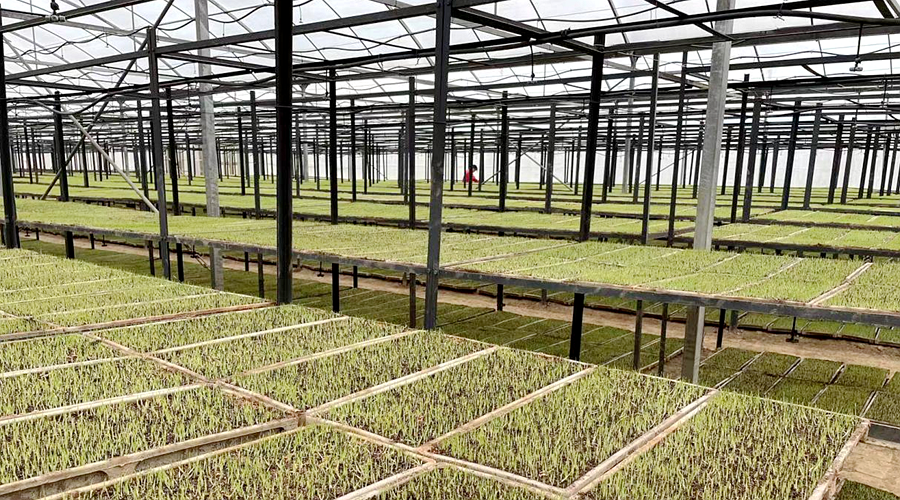白洋河育秧大棚内正在生长的秧苗
