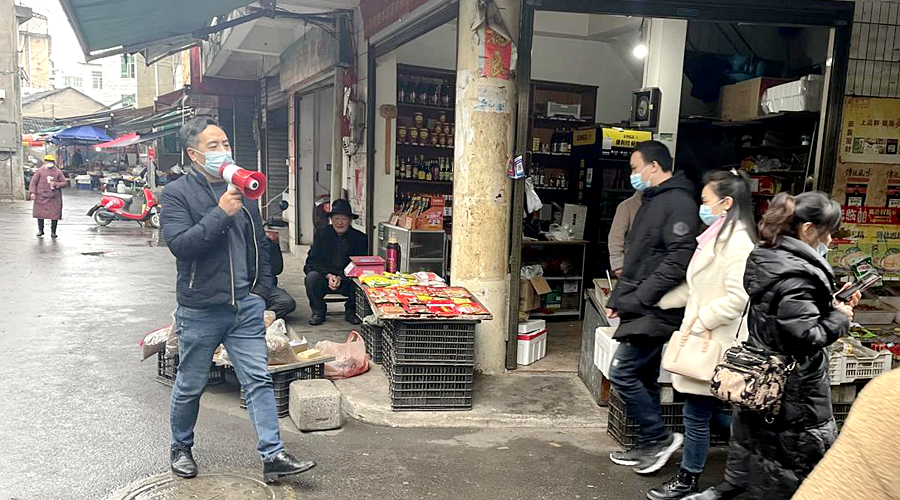社区干部走街串巷宣传疫情防控知识