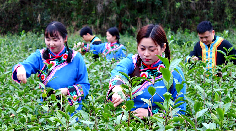 桃源县牛车河镇新时代文明实践所的志愿者们身穿民族服饰,在茶园负责人的指导下,认真学习采茶技巧,沐浴着满园生机的绿色,小心地采摘每一片嫩叶,轻快地穿梭于一茬一茬茶树之间,一粒粒清香稚嫩的芽尖落入篓中,凝结着春天的清香,看着手里刚摘下来的嫩芽,顿时觉得唇齿留香,大家一边采茶一边交流,了解当前的茶叶发展、采摘销售等情况,现场一派热火朝天的景象,成为这灿烂春色龙凤山中一道靓丽的风景线。