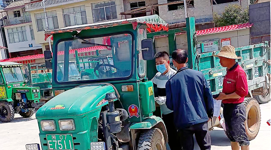 (工作人员对农机进行年检)