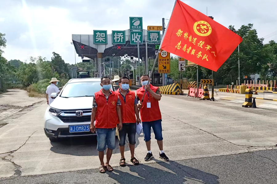4月14日上午,架桥镇退役军人事务站组织志愿者服务队到架桥收费站疫情防控服务点,慰问奋战在防疫一线的服务点工作人员,为他们送去方便面、矿泉水、面包等慰问品。