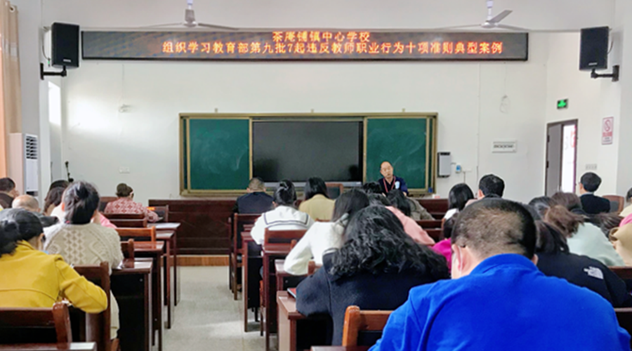 为加强教师思想政治和师德师风建设,严明底线红线,4月13日,茶庵铺镇中心学校组织全体教师在学校会议室学习《教育部公开曝光第九批7起违反教师职业行为十项准则典型案例》,此次会议由该校常务副校长陈仲春主持。