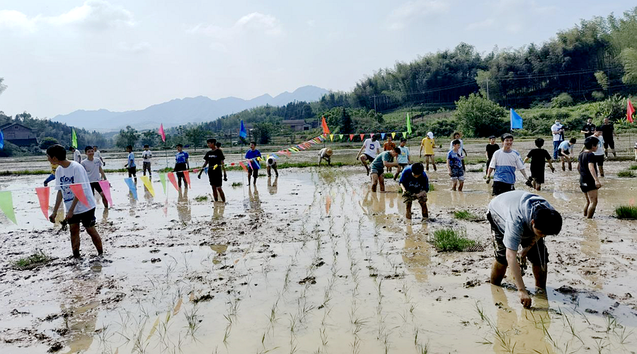 在专业人员指导下,师生们卷起裤腿,撸起袖子,赤脚走进了泥田里,秉承着不怕脏、不怕苦、不怕累的农耕精神,一边插秧,一边交流经验。学生们表示,在劳累过后收获了真知,知粮食的来之不易,知耕种的艰辛困苦。