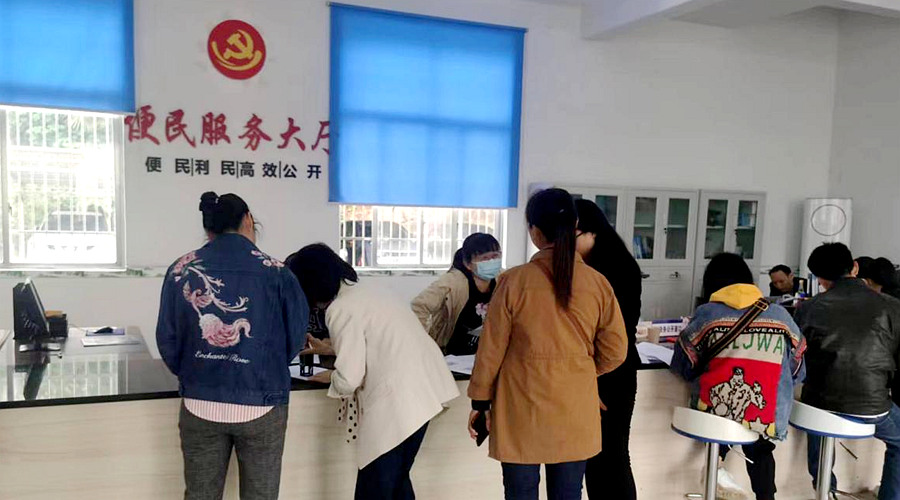 泥窝潭乡政务服务中心办证现场