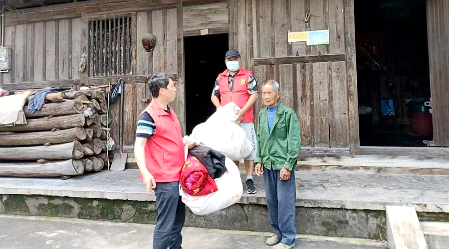 在烈属家中,志愿者们现场查看了灾情,协助其转移生活物资,送上慰问金,并与邹冬艳及其家人进行亲切的交谈,详细地询问他们目前的生活情况,鼓励他们保持乐观心态,坚定信心,在党和政府的关怀帮助下,一定会渡过难关。镇危房改造工作负责人高志表示:“我也是一名退役军人,烈士为国失去了生命,我们不应该让烈属再流泪,我会将您的住房情况第一时间上报并按程序纳入2022年度危房改造。”