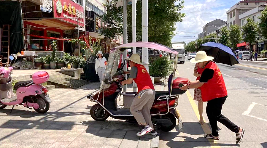 “阿姨,您好!衣服不能在这里晾晒的,我帮你放到晒衣架上吧”“叔叔,你电动车上带这么多物品很不安全,您最好分批运送”“您好,生活垃圾要打包装袋再投放到相应的垃圾桶中”......一句句善意的提醒、一声声文明的劝导不时在耳边响起。在枫树维回乡街道上,随处可见一群头顶小红帽、身着红马甲的巾帼志愿者们忙碌的身影。她们面带微笑,用文明、规范、标准的劝导方式,充分发扬不怕苦、不怕累的精神,团结协作、分工明确,撸起袖子齐上阵,共同构筑出一道亮丽的风景线。