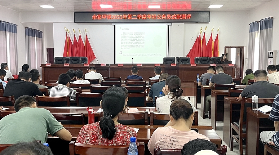 近日,佘家坪镇开展了2022年第二季度年轻公务员述职测评会议,镇人大主席谭立新同志主持会议,镇党政班子成员、全体机关站所干部职工和9个村(社区)党总支部书记到会参评。