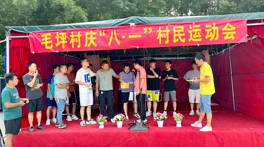 在中国传统村落、省级历史文化名村、省级乡村振兴示范创建村、市级文明村,桃源县牛车河镇毛坪村的文化体育广场上人头攒动、热闹非凡,一场“八一”村民运动会喜迎建军95周年,吸引了全体在家村民以及返乡大学生到现场参赛,观摩助威。