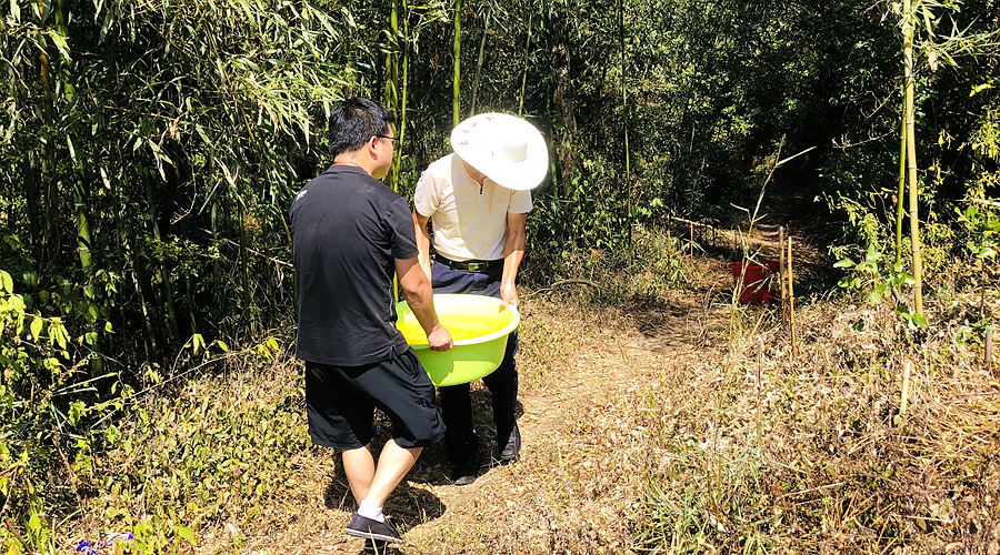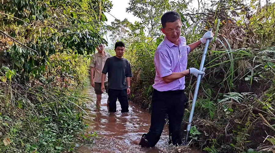 联村干部陈跃春带领工作人员在雷峰山村护水除障