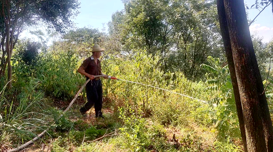 面对高温的考验,县森林公安和泥窝潭乡党委、政府县乡同心,冒暑作业,利用水泵、水管等设备和工具,坚持细浇慢灌、浇足浇透、应浇尽浇,为山上的植物们送去了犹如春雨般的甘露,全力以赴开展抗旱浇水工作,切实保护基地生态环境。