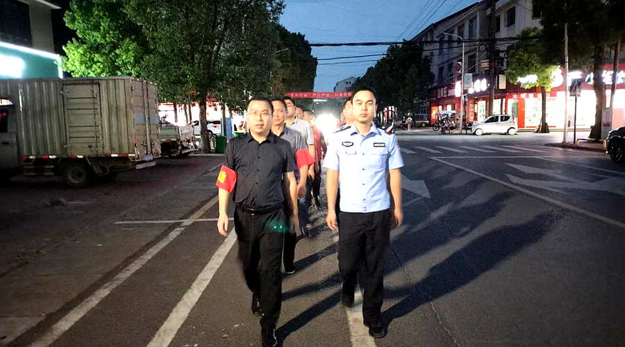 9月4日晚,循着朦胧的夜色,蓝制服与红马甲整齐列队,穿梭于盘塘镇集镇大小街道,由镇党委书记金寅星带队,镇平安办、派出所、镇村干部、平安志愿者齐参与,开展夏季治安打击整治“百日行动”夜间巡逻。为着力解决好人民群众反映强烈的突出社会治安问题,保障全镇政治安全、社会安定、人民安宁,“百日行动”一日不松,日查夜巡,保证各类治安问题不冒头。