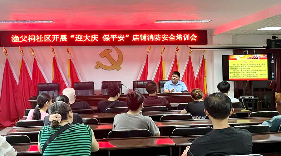 近期来,天气干燥炎热,防火灭火宣传刻不容缓,为进一步提高辖区商户的消防安全意识,减免火灾发生时居民财产损失,普及消防安全知识,9月13日下午,漳江街道渔父祠社区组织辖区内店铺负责人开展“迎大庆 保平安”主题的消防安全培训。