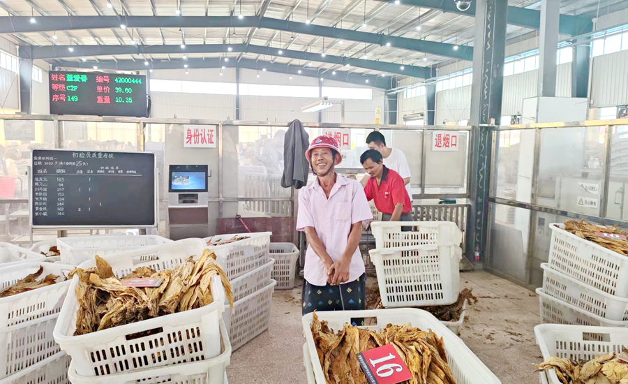 9月19日,今年的烤烟收购工作正在进行。架桥镇翰林村的烟农正在笑呵呵的进行烤烟出售。