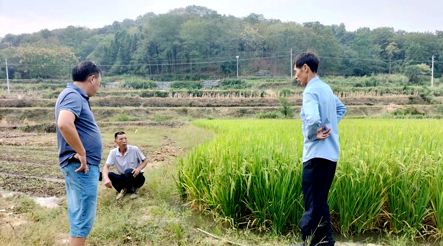 黄石镇农业中心主任王荣华深入田间地头,察看稻田用水核实情况,根据作物种类,指导农户及时浇水灌溉,提高土壤墒情。