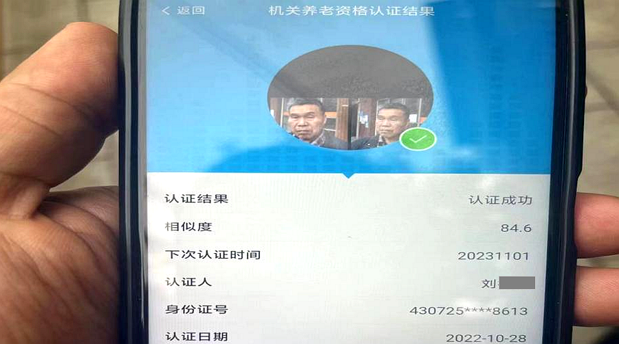 “伯伯,你的脸对着这个圆圈,眨一下眼睛,摇一下头。”页面马上显示认证成功。10月28日下午,下班回家的鲁智勇找到刘祖贤,帮他顺利完成机关养老资格认证。其他站所中心也在采取方便他人的方式对退休人员进行资格认证。