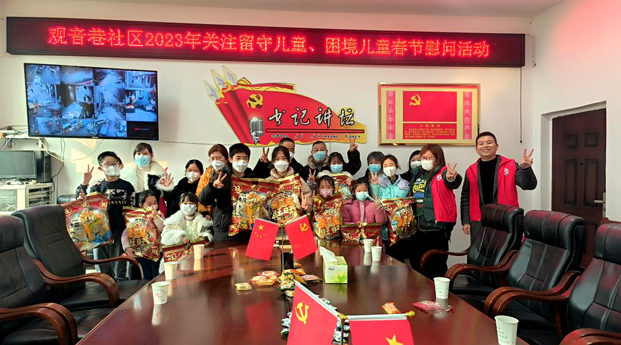桃源县漳江街道观音巷社区的工作人员询问了孩子们的生活情况,鼓励他们保持阳光向上的良好心态,努力学习,并与孩子们玩起了成语接龙的游戏,在一片欢声笑语下,给孩子们送上了旺旺大礼包、文具用品等慰问品,让他们感受社区大家庭的温暖。慰问活动结束后,留守困境儿童在社区工作人员带领下参观了社区的图书室、文体活动室、微型消防站等,让他们可以自由阅读书籍、健身强体、学习消防小知识,感受社区文化。