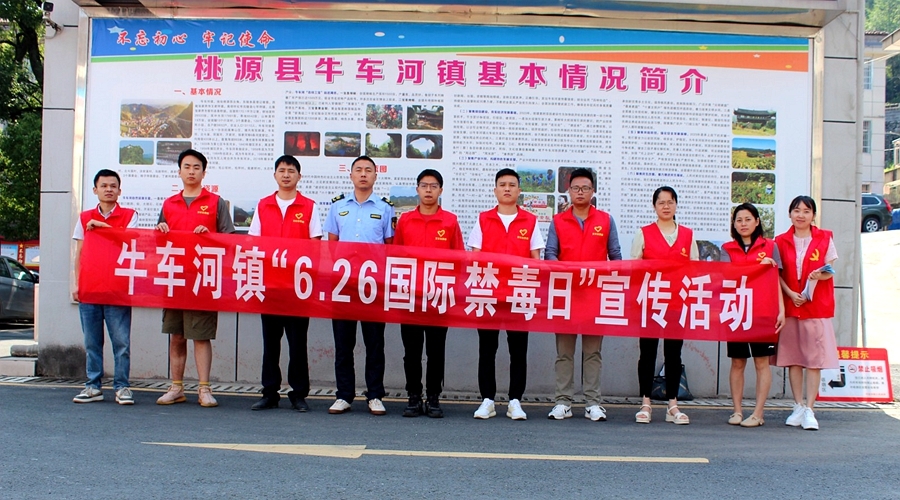 为进一步提高人民群众对毒品危害的认识,增强辖区内居民知毒、防毒、拒毒意识,6月26日,桃源县牛车河镇人民政府组织平安办、派出所、执法大队等相关部门开展了以“健康同行 远离毒品”为主题的国际禁毒日宣传活动。