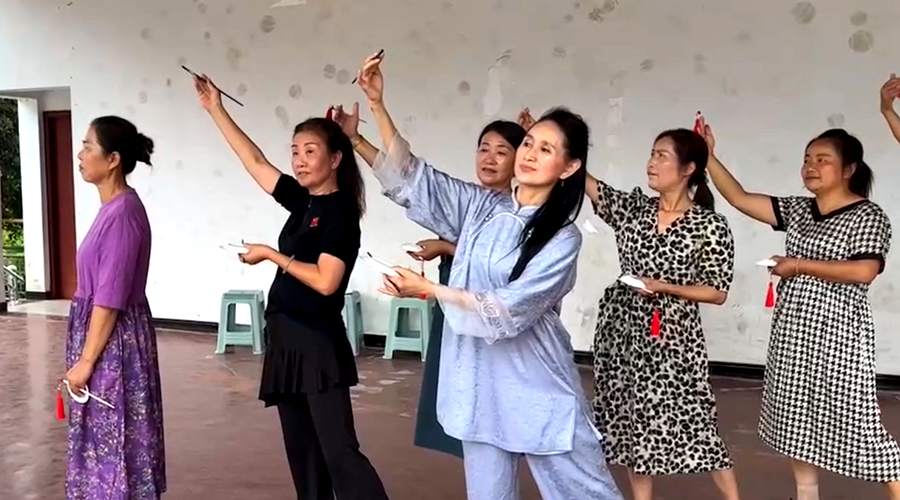 杜美霜女士带领志愿者学唱常德丝弦《佘家坪明天更璀璨》