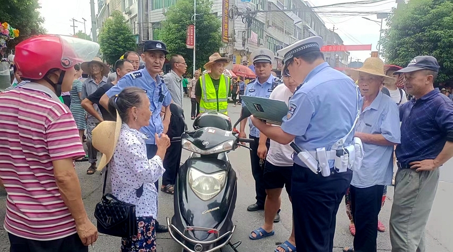 正值赶集日,不少村民驾驶摩托车来到集市赶集,人流、车流量大,为规范驾乘人员安全驾驶行为,保障道路交通安全,执法队伍早早来到辖区主干道开展执法工作。执法人员采取严查纠违和教育劝导相结合的方式,对摩托车不佩戴头盔、违法载人、违法安装晴雨伞等道路交通违法行为进行集中整治,并对劝阻不听者现场教育并予以扣车处罚。此次联合执法行动共出动警力6人,查处交通违法行为9起,扣车处罚9起,发放交通安全宣传手册100余份。