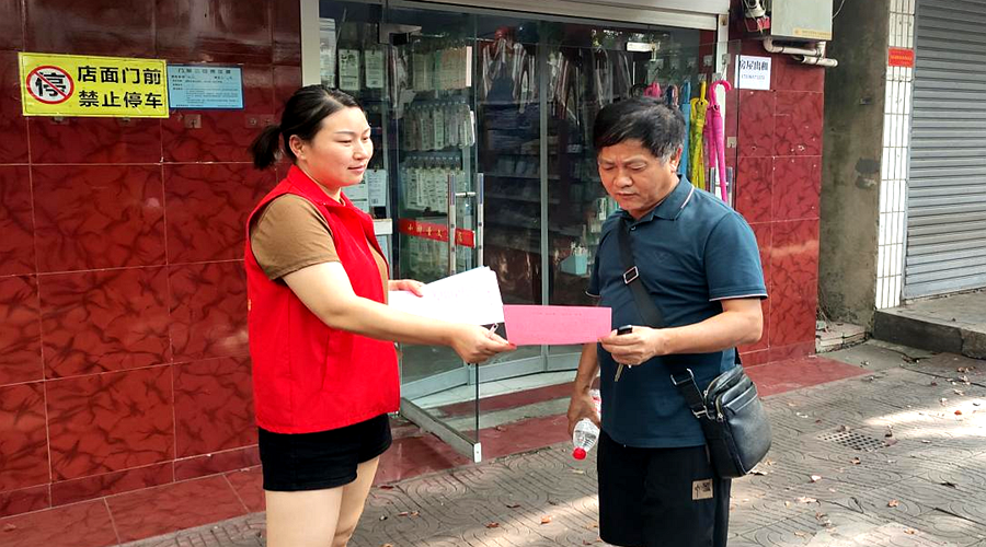 志愿者发放拒绝“升学宴、谢师宴”倡议书