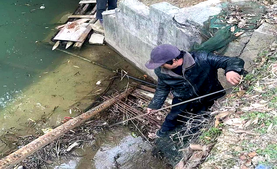 黄石镇新铺村退伍军人退伍不褪色,挑起代表职务,主动清理村集体堰塘出口的垃圾