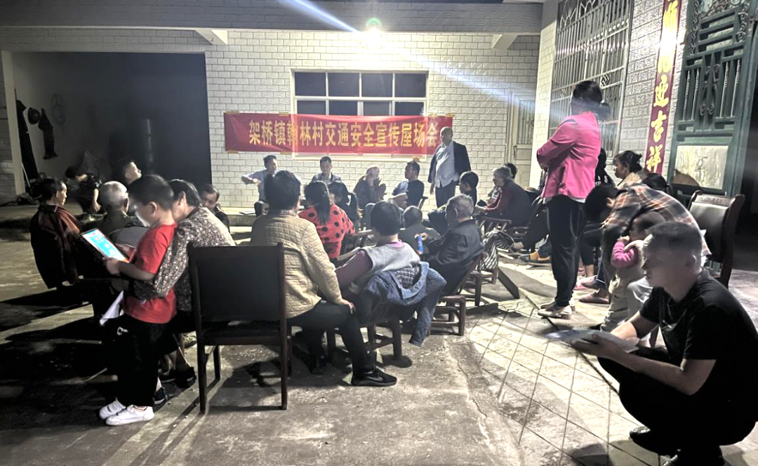 10月17日晚,架桥镇人大主席曾星耀、综合行政执法大队支部书记刘南平、翰林村支部书记黄志辉一行在花木堰组利用晚间休息时间召开了一场别开生面的“屋场会”,并邀请县道安办副主任储冰进行交通安全指导授课。