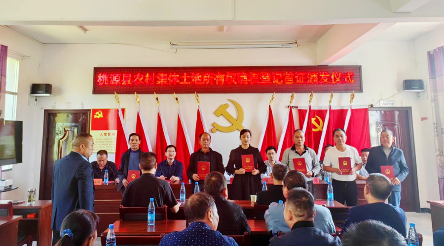 10月31日上午,湖南省桃源县农村集体土地所有权不动产权确权登记首证颁发仪式在剪市镇狮子殿村会议室举行,现场向狮子殿村及12个村集体经济组织代表(组长)颁发了共计57本集体土地所有权不动产权证书。